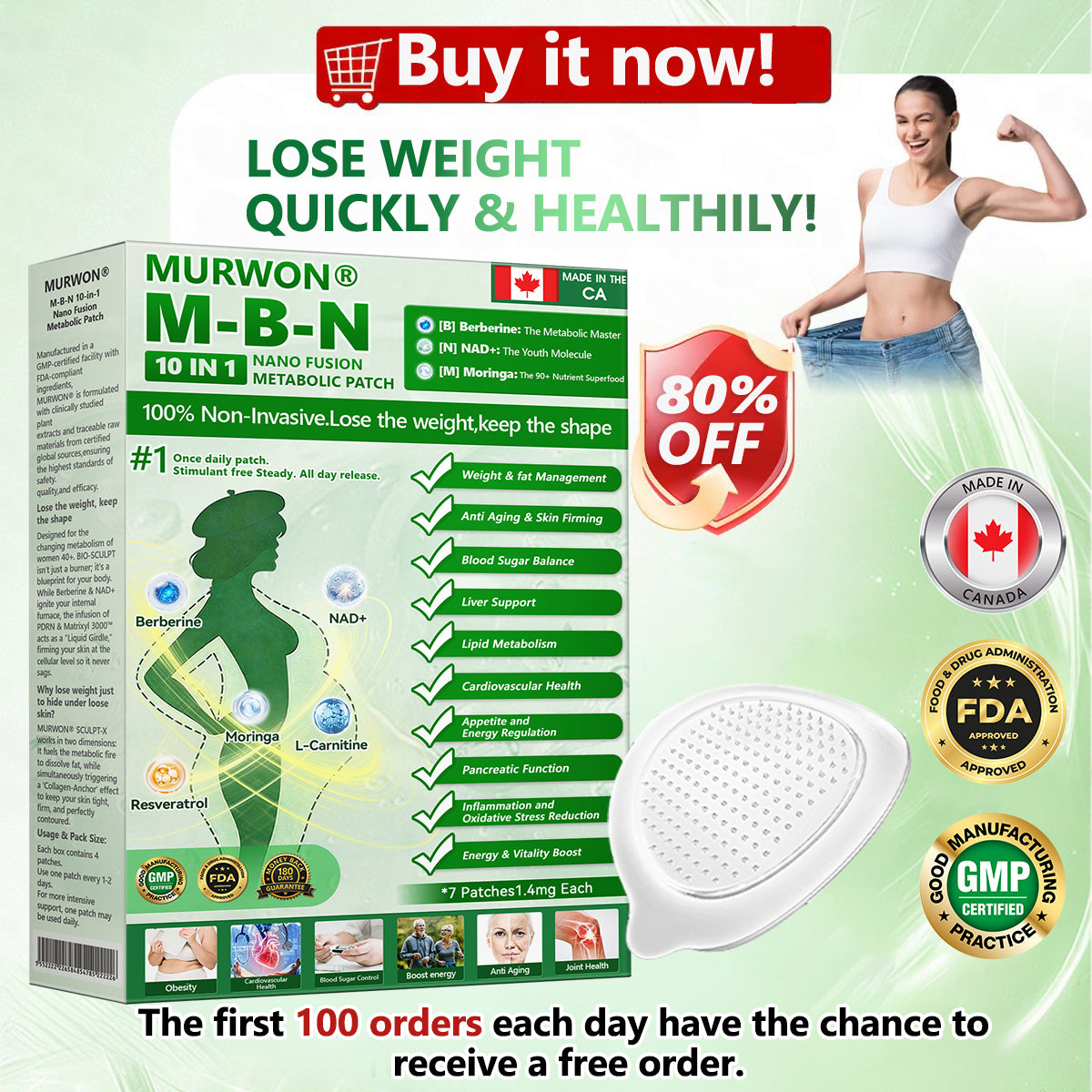 ๐๐ ๐ท๐๐๐๐ ย was developed through more than 20 years of research by a multidisciplinary team of over 30 experts. Each patch incorporates an ultra-fine microneedle architecture measuring approximately one-seventh the thickness of a human hair, designed to ensure a smooth and virtually painless application. The formulation contains highly concentrated natural bioactive compounds, up to 20-fold higher than conventional market levels, including Moringa and Berberine, which act synergistically to support healthy glycemic responses, appetite regulation, and lipid metabolism, thereby promoting gradual and sustainable weight management. Enriched with NAD+, the patch further supports skin firmness and structural resilience during body-weight fluctuations, helping maintain a lean appearance without compromising comfort or aesthetics. Additional high-efficacy components contribute to the support of immune function, digestive health, gut balance, womenโs health, daily energy levels, and fatigue reduction, collectively promoting a more youthful and resilient physiological state from within. Manufactured in GMP-certified facilities that comply with Canadian quality standards, this needle-free, science-driven solution provides a safe and comprehensive approach to effective weight management and long-term metabolic health, designed to work in harmony with the body rather than against it.